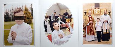 Albumik - 3 zdjęcia (portret, przyjęcie komunii św., zdjęcie z księdzem lub katechetką) w formacie 15x21 - 60zł
